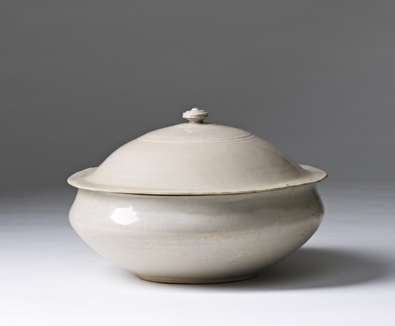 Large white-ware lidded bowl