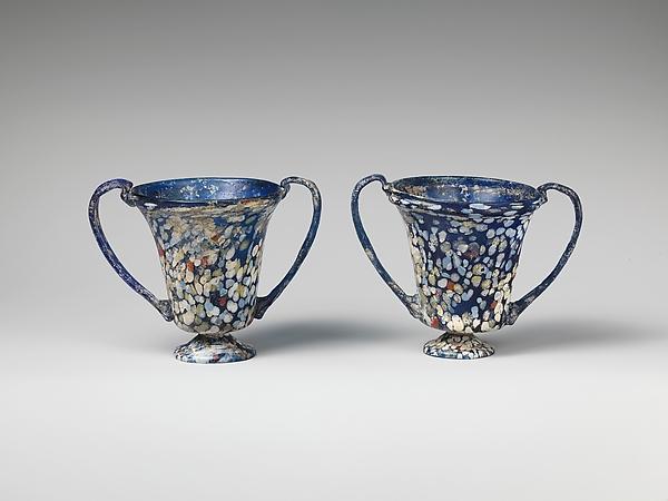 This object has a provenance established to 1996 and has been loan to, and on display at, The Metropolitan Museum of Art since 2007. The preservation of a matching pair of ancient glass vessels is extremely unusual and fortuitous. Their shape and so-called “blobbed” decoration make these two drinking cups especially attractive. The Metropolitan Museum of Art does not have any other examples of the “blobbed” technique; this example is exceptional for its beauty, importance and presentation.