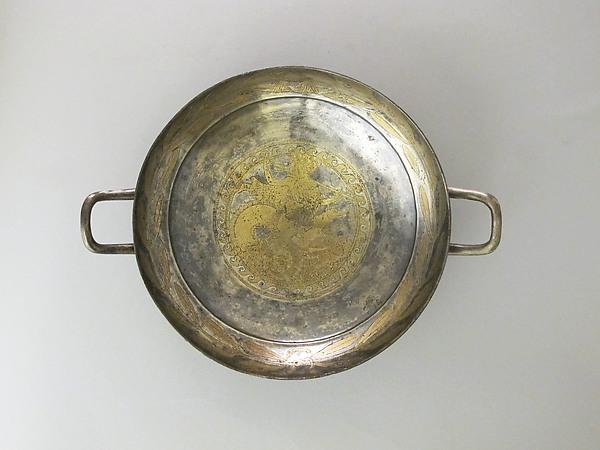 Silver plate was used throughout the ancient Greek world in the Classical period, although very little survives. Even rarer are the so-called “gold-figure” vessels, which have been predominantly found on the north-eastern fringes of the Hellenized world in ancient Thrace and the ancient Bosporan kingdom. This vessel is a particularly good example of this metalwork which is otherwise not represented in the Museum’s collection.