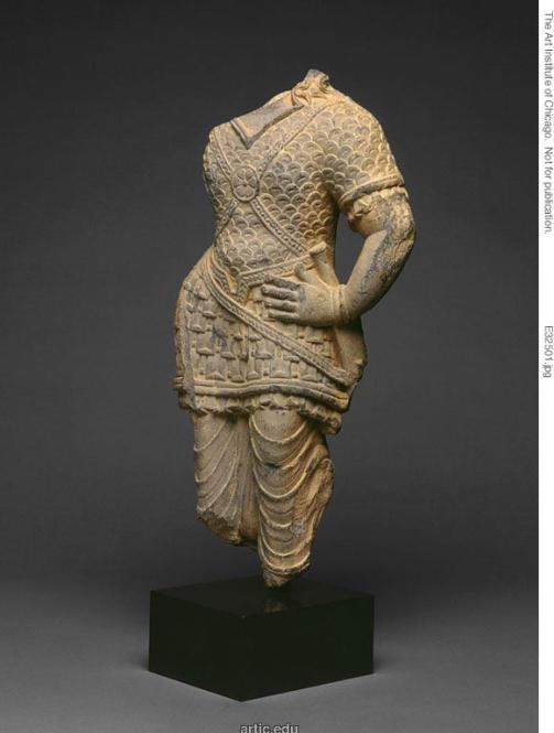 Also: Gift or bequest expected or on loan prior to 2008. This acquisition falls within two exceptions. First, the cumulative facts and circumstances known to the Art Institute of Chicago at the time of the acquisition allowed it to make an informed judgment to acquire the object. This object was acquired by Mr. Alsdorf in 1980 from Mr. David Newman, London. Mr. Newman is deceased and attempts to determine when and from whom he acquired the object were unsuccessful. It has been exhibited at the Art Institute of Chicago in 1997 and since December 2008 as well as included in an exhibition in Missouri. The object has been published various times, including in a major catalogue of South Asian art, A Collecting Odyssey: Indian, Himalayan, and Southeast Asian Art (1997), and in a major compendium on Gandharan art, Kurita, Gandharan Art II: The World of the Buddha (1990). In addition, the acquisition furthers the representation of the artistic achievements of all civilizations in art museums because it is a fine sculpture of a guardian figure from the Kushan period which flourished in present day Pakistan during the 2nd/3rd century AD. Second, the acquisition of the object was by gift and the object was promised to the Art Institute prior to 2008. Mrs Alsdorf publicly promised the object to the Art Institute of Chicago in 1997 and thereafter signed a promised gift agreement for the object in 2002.