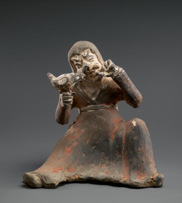 北魏/北齊 彩繪陶馴鷹人俑 Seated Falconer