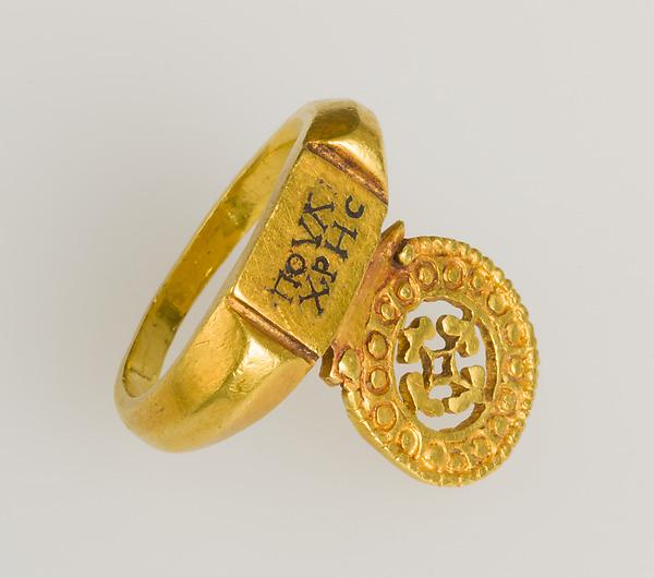 This work has provenance confirmed to 1985, when it was placed on deposit, but not displayed, at the Walters Art Museum from 1985 to 2014. This work has been exhibited and published twice. This ring is especially significant for its status as the only early Byzantine marriage ring in the collection and for its linkage of the Roman and Byzantine cultures of late antiquity, when Christianity emerged as the dominant religion of the ruling classes.
