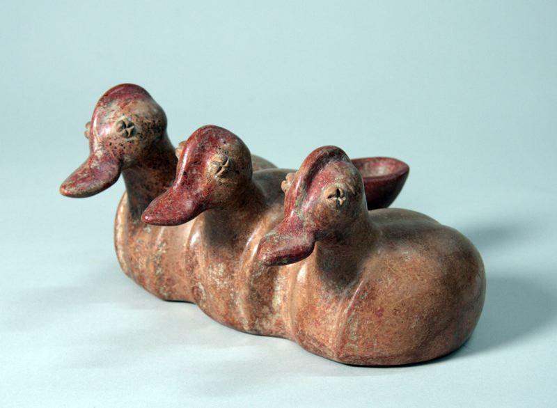 Three joined ducks with spout to rear