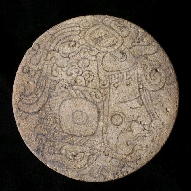 One of a Pair of Maya Painted Earflares with Profile Deity Heads