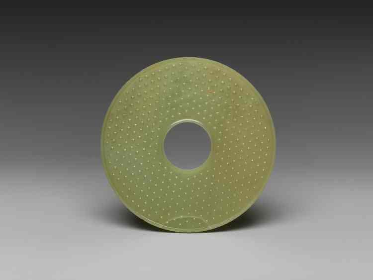 This work has provenance established to at least 1984 when the work was published and offered for sale at public auction. This work fills a major gap in The Metropolitan Museum of Art’s comprehensive collection of Asian art because the Museum has no other bi of this type from the 3rd century B.C. in its collection and because of the work’s excellent quality and condition.