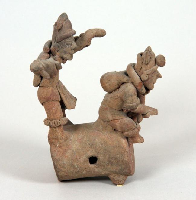 Seated male figure with arms resting on raised knees and wearing jaguar headdres
