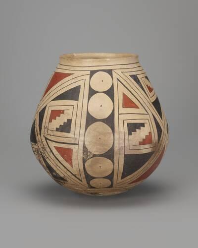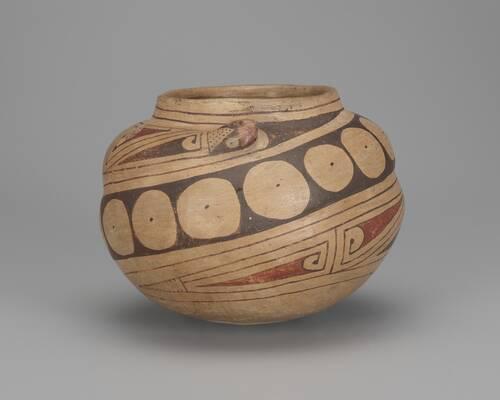 It is not currently possible to determine if the object originated within the United States or Mexico due to the absence of archaeological provenience and because Casas Grandes societies inhabited both sides of the present-day US-Mexico border. If the object originated in Mexico, provenance research allows the museum to make an informed judgment that the work was most likely in the United States by 1970. The object was acquired by Patricia Brett Erens, the donor, after June 1975, from Crouch Gallery in Macomb, IL, which had purchased it at public auction on May 31, 1975. The object was previously in the collection of Jay Leff, and had been publicly exhibited from February 1972 in Allentown as well as published in the accompanying catalog. Presumably, the object was in Leff’s possession for some period of time before it was exhibited, and the Art Institute of Chicago is unaware of any prior claims made against the work. As a border culture, Casas Grandes has often been overlooked by museums, and this vessel will help present a more diverse and inclusive understanding of Indigenous art in the Americas.