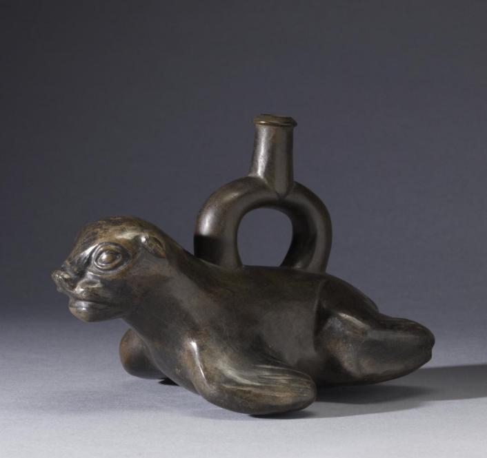 Based on the results of provenance research, this Mochica Ai-Apec stirrup vessel was in Caracas, Venezuela by the late 1970s, when it was purchased by its previous owner, collector Jimmy Belilty. This piece featured prominently in two publications by José Antonio de Lavalle: Coleccion Arte y Tesoros del Peru Moche (1985 and 1990). Together, these cumulative facts and circumstances known at the time of acquisition allowed the Seattle Art Museum (SAM) to make an informed judgment to acquire the object. The vessel cleared a search conducted by the Art Loss Register. SAM’s collection has some examples of blackware ceramics, but nothing as rich as this piece in composition and iconography.