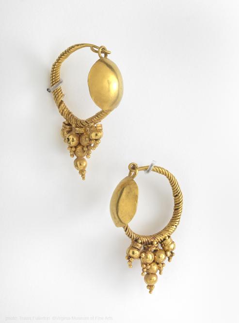 These works have a provenance established to 1987. The donor of these objects acquired a number of works of ancient jewelry on the art market between the late 1970s and ca. 1993. Most are common types for which there is no additional provenance information. VMFA decided to make an exception to the AAMD guidelines in order to bring these objects into a free, publicly accessible, educational institution, where they could be studied, displayed, and publicized.