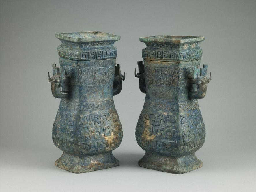 Rectangular Food Vessel (fang ding) with Flattened Feet in the Form of Kui-Dragons