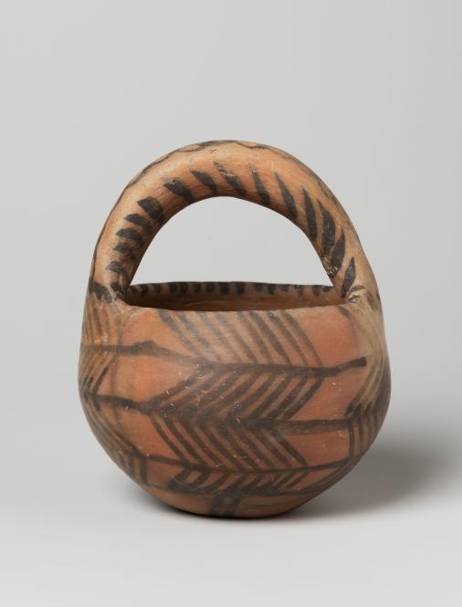 Painted Cup with Basket Handle